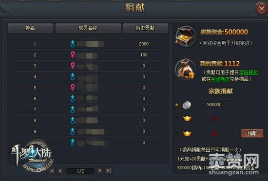 捐赠50元宝获得1000*贡献+500W宗族资金