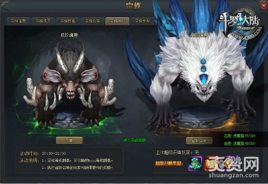 宗族BOSS的活动时间是固定在每天的20:30~21:00。宗族的等级越高、所召唤出来的BOSS等级也越高。召唤分为普通召唤和超级召唤,普通召唤是免费的,超级召唤是需要100元宝,并且开启超级召唤的玩家还会额外获得:3级宝石礼包*1+神之手谕*1+200*绑定元宝。