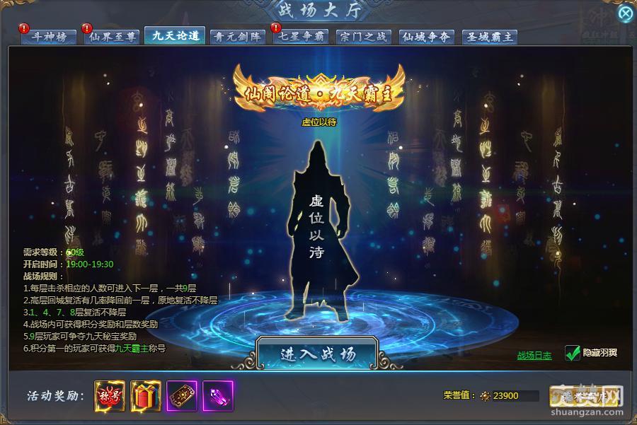 玩家们可进入九天论道副本,直冲九天、守护秘宝,争夺“九天霸主”称号;共闯青元剑阵,降服宝剑,拾取稀有道具;加入跨服战场,与邻服高手强强对决谁与争锋;挑战圣域BOSS、天界BOSS、精英BOSS,获得神石、高级稀有材料,更有最高5000元宝的奖励……多种特色玩法,让你从早嗨到晚,根本停不下来!