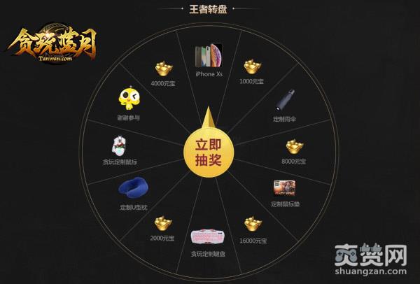 2018年10月24日——2019年1月10日《贪玩蓝月》第五届巅峰赛举行期间,玩家每天可以签到一次,签到后可以参与转盘抽奖。我们准备了iPhone XS、定制鼠标、定制键盘、海量元宝等超豪华大礼,等你来抽哟!