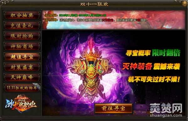 活动期间,王之宝藏可抽取高级装备,抽中的概率翻倍!这个活动限时3天,机不可失失不再来哦!你不寻宝,就被别人抢走了!