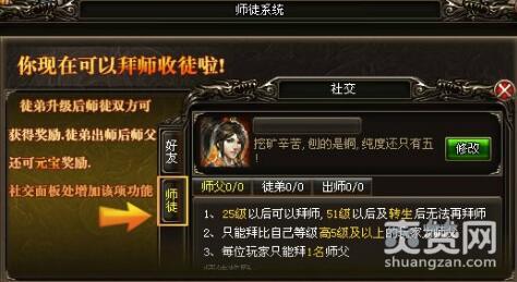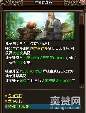 正所谓青出于蓝而胜于蓝,长江后浪推前浪!在923yx《烈火战神》中有一个拜师系统,各位大侠可以在此结下一段师徒情缘。在923yx《烈火战神》中成功结为师徒后,不仅可以一起闯荡江湖,在做任务时还有额外奖励哦!