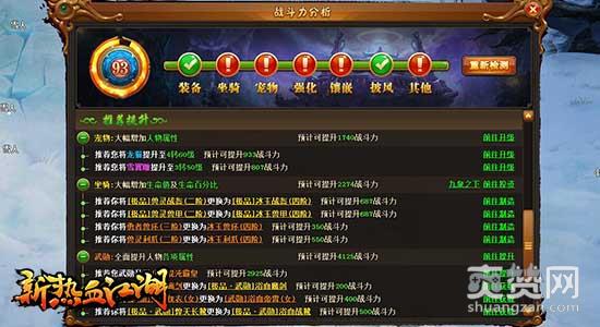 战斗力分析工具可以快速分析玩家角色当前的战力,并为玩家提供对应的战力提升解决方案。战斗力分析系统将各种战力提升途径归类为三个不同阶段:必备、急需提升、推荐提升,玩家可以清楚的看到自身角色的长处与劣势。