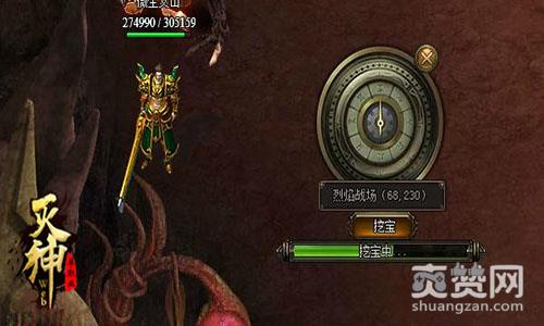 萝卜玩《灭神》游戏里点击藏宝图,可以看到右下角提示藏宝点,点击可以自动寻路,到达藏宝点,点击挖宝,开启宝藏副本,获取宝藏。