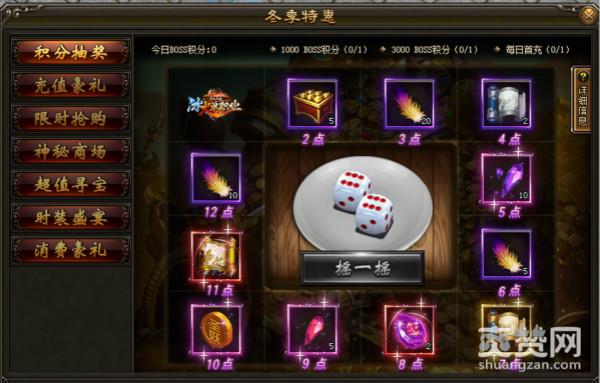 11月15日-17日,玩家击杀boss可获得boss积分,boss积分数量达指定档次可免费投掷一次骰子,根据骰子点数可领取奖励。每日最多可获得三次。积分抽奖分为三个档次,1000 BOSS积分、3000 BOSS积分和每日充值积分!积分多多,快来了解一下吧!