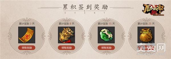 37《屠龙战神3D》的玩家在单月累积签到满3天、8天、15天、25天,还可以额外获得转盘抽奖次数,所有道具均通过邮件发放,玩家要及时查收,如果是漏签的话,过后是无法进行补签的,但是不影响累积签到奖励。