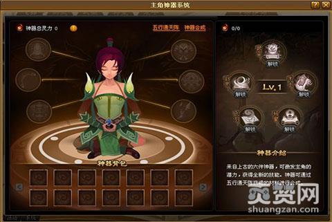 主角神器是需要藏金阁点满之后才会出现,而且是主角专享的功能。神器可以为主角提供灵力值,灵力值用于激活主角技能,因此在在这里主角可以获得额外的5个新技能,可以说是空前强大的。神器一种有5种品质,分别为一品至五品,三品神器可加成额外属性,而五品神器则可以直接加成主角一定百分比的属性。