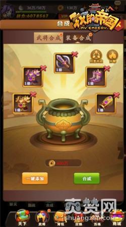 在《我的帝国》中,合成系统可以将5个同等级的武将或装备随机合成为1个高一等级的武将或装备,合成会消耗一定的铜币,如果你嫌麻烦,还可以点击批量合成,快速合成武将、装备和符文材料,当主公等级达到90级时,可以进行材料的分解,以防合错。