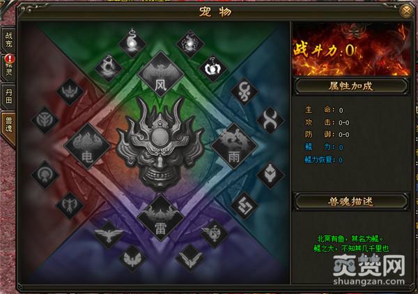 于此同时,在鲲灵成功释放吞噬技能后,还将获得兽魂奖赏,吞噬获取的兽魂无法直接获取,需要玩家收入囊中进行炼化,在完成炼化后,将有机会出现兽魂精魄或者极品兽魂。目前越高级的BOSS产出极品兽魂的概率就越大,回收兽魂即可获得鲲灵精华,为你的巨鲲养育升级。当鲲灵成功升级至11级后,兽魂系统便将正式开启,将炼化成功的兽魂装备镶嵌此中,获得更强的属性加成!北冥有鱼其名为鲲,现在就在360uu《灭神》里领取你的巨鲲,鲲灵附体助你横扫沙场跻身战神!