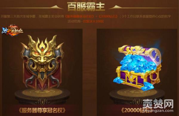 开服第三天,万众瞩目的圣域争霸就开始了!圣域霸主将获得服务器尊享冠名权、20000钻石惊喜好礼!霸主需要在3个工作日内联系客服提供服务器的名字哟,为了冠名,为了2w钻石,冲鸭!