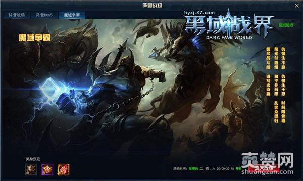 神魔战场强势上线,为所有37《黑域战界》里的勇士们带来新的舞台,证明实力的时候到了!在神魔战场里,只有手里的武器,身上的铠甲是你唯一的依靠。警惕每一个敌人,步步为营,坚持到最后就可以获得最高的奖励!