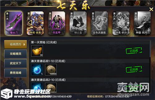 我去玩《汉室雄风》中推出了各种类型的全民活动,比如限时冲级、七天乐、首充豪礼等。开服之后,玩家自由参与这些活动,可以领取超值大礼包。在七天乐活动中,玩家累计登录七天,即可领取S级武将徐晃和神器鸣鸿刀。