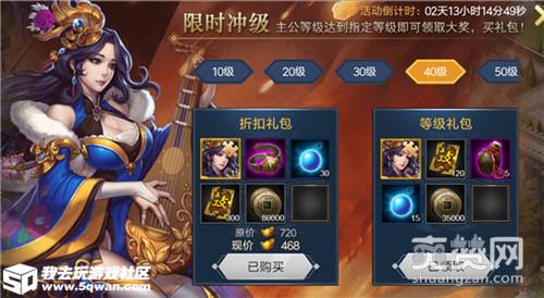 而在限时冲级活动中,只要玩家在规定时间内达到50级,即可激活超强奶妈蔡文姬,并可领取其他的超值好礼。总而言之,活动好礼天天送,只要参与就可以领取。