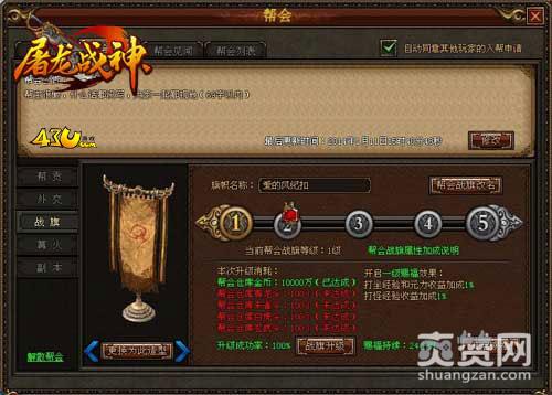 43u《屠龙战神》玩家们等级达到70级后,就可以创建或加入一个帮会,拥有帮会后可以开启各种帮会福利及权限。通过帮会捐献可增加帮会资金,帮会资金可以用于提升帮会等级,扩充帮会人数上限,并开启更多的帮会功能。每天的帮会捐献有上限限制,且帮会资金为0时,帮会将自动解散。