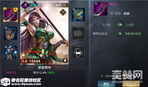 我去玩《汉室雄风》中,装备强化有一定的等级上限,每件装备的等级最高不可超过2倍的主角等级。因此,当装备强化到一定限度后,主公需要提升自身等级来提高装备的等级上限。在一般情况下,强化装备应当与升级武将同步,这样能使武将得到最大的战力提升,可提高战斗获胜的几率。