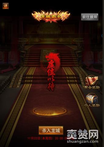 活动期间内,全服所有加入公会的玩家均可进入活动地图参与活动。活动开启之后,所有玩家需摧毁位于殿前的雕像,从而开启皇宫争夺,最终成功获得皇宫归属权的公会为龙城占领者。
