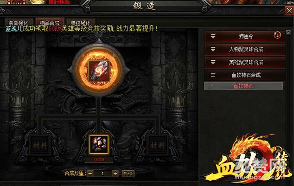 《血饮传说》中玩家可以消耗低级物品通过“合成系统”,获得高等级的押送令,人物聚灵珠,英雄聚灵珠以及稀有物品血饮神石。其中单个押送令的合成数据从低到高是“235”,单个人物/英雄聚灵珠合成数据从低到高是“5533”,单个血饮神石合成数据是20个碎片。