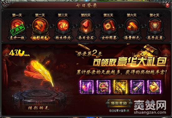 43u《降龙之刃》开服后七天登陆有豪礼,每天都有不一样的惊喜,依次为:直升一级丹、材料羽毛、转生修为丹、四级暴击宝石、紫色美女图鉴卡、2888绑元、特殊称号忠实粉丝。