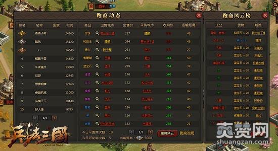 玩家在群雄争霸中跑商需要先购置货物,根据实时物价,前往差价最高的地区进行贩卖,以此获得高额差价。玩家每日可跑商十次,可劫商五次,两者都能得到大量的财物及资源,物资在国战中将起到至关重要的作用。