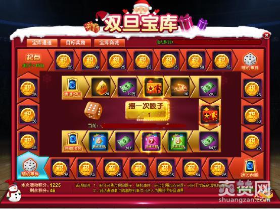 活动内容:活动期间参与双旦活动即有机会获得高级道具奖励。宝库积分更可兑换X级巨星邀请函哦。