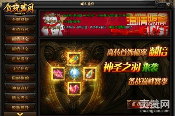 在这个严冬里,古天乐为你献上《贪玩蓝月》暖冬盛宴福利,11月28日-11月30日活动期间,高转武器、首饰概率翻倍,神圣之羽、圣纹精魄限时抽取!并且在龙族寻宝中,每寻宝5次,可额外获得1点祖龙之力,获取无上限,寻宝次数达指定次数,即可额外大礼。更有鸿运当头、脱胎换骨、神秘商店等10大惊喜活动,让你玩足三天三夜!