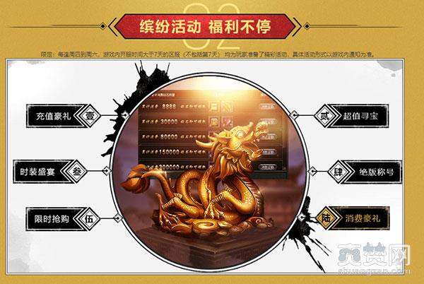 充值豪礼、时装盛宴、限时抢购、超值寻宝、绝版称号、消费豪礼……游戏中将上线大量限定福利,每逢周四到周六,开服时间大于7天的区服(不包括第7天) 均为玩家准备了精彩活动,想要了解具体的活动内容?那就来游戏里看吧!