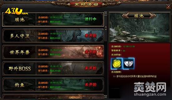 活动二:瑶池,每天中午与其他玩家在瑶池泡澡、聊天,即可获得大量经验奖励。
