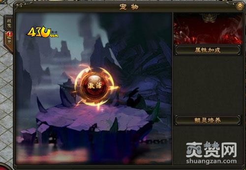 43u《灭神》鲲灵系统在开服第35天,等级大于或等于400级时才会开启。点击技能栏上方的“宠物”按钮打开宠物界面,在左侧切页,切换至鲲灵,点击界面中心的激活按钮,即可激活鲲灵。