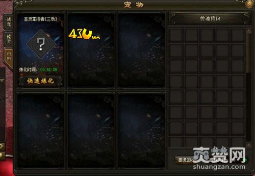 玩家成功释放吞噬技能后,屏幕中间会出现一个图标,此图标是兽魂。当玩家首次吞噬boss获得兽魂后,宠物界面中会增加一个切页“丹田”。吞噬后的兽魂不会直接获得,需要时间进行炼化,玩家也可以消耗元宝进行快速炼化。
