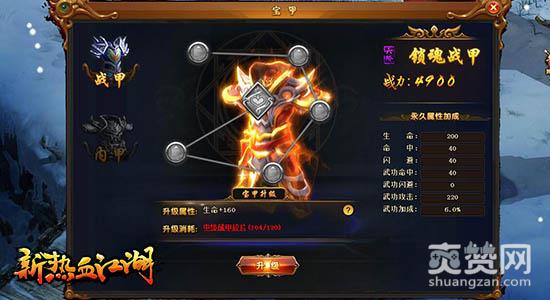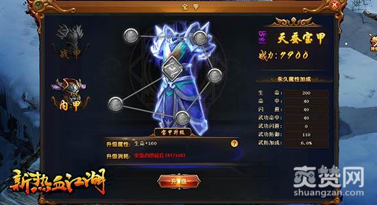 攻之战甲,守之内甲,攻守相合,无往而不利。腾讯平台《新热血江湖》宝甲系统拥有攻守两种独立养成体系,通过不同分支的培养,玩家可以同时强化攻守两种能力,使角色能力得到全面提升。腾讯《新热血江湖》现于QQ空间、QQ游戏大厅同步火爆开服中!