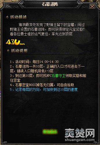 领取奖励后,继续与静流对话即可进入石墓密室地图,击杀BOSS石墓猪王,BOSS会掉落大量极品高转装备,先到先得,你还不来试试吗啊?