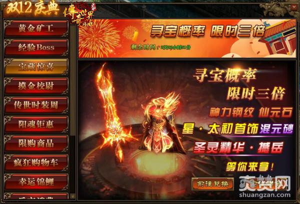 以下场景大家也许历历在目:双十一熬夜抢付款,满减优惠、津贴、买三免一各种规则烂熟于心,最终如愿以最优惠买下了所有需要或不需要的东西!既然有人顺利开车,必然有人惨烈翻车,付款的最后一下手滑点了清空购物车,多日心血付之一炬,此间悲痛无以复加。而今双十二又来势汹汹,买了后悔一时,不买后悔一世。为了抚慰大家受伤的心和失去的手,传奇世界网页版双十二庆典昨天就启动了~12月11日-13日,一起回血吧!