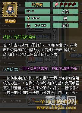叶良辰不仅是网络曾经热门话题之一,又是1k2k《勇者立志传》后续更新的英雄。众所周知,该游戏一向以奇葩为主,玩法为辅,令玩家们哭笑不得。作为游戏新英雄出场,他确实能让对手无可奈何,先不说他的各种古代语言让你大吃一惊,单是技能“你们无可奈何”就让对手受不了。此技能的效果就是若己方当前战力小于敌方,13%概率发动,在攻击后恢复25%当前战力。若此攻击击中敌人,敌人的下一次攻击只会造成1点伤害。足够劲爆和奇葩吧?