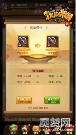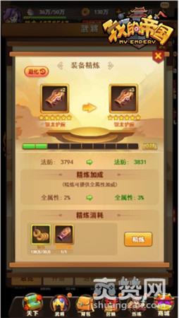 另外,想提升自己的实力,还可通过装备强化。37《我的帝国》的装备强化分为强化大师和精炼大师,消耗铜币可以对装备进行强化,通过提升装备的属性来提高战力,但强化等级不能超过主公等级。精炼是指使用铜币和同星级装备对目标装备进行精炼,可将普通装备不断精炼为卓越、完美,并提供装备全属性加成。