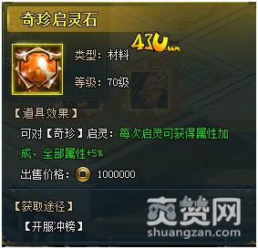 同时,对奇珍还可使用奇珍起灵石,每次启灵可获得奇珍全属性加成5%!奇珍启灵石可以通过开服冲榜活动获得。机会难得,各位小伙伴可不要错过哦!
