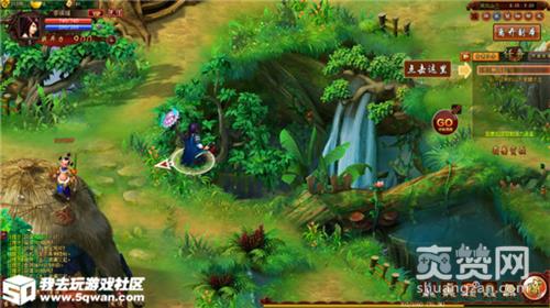 “桃源村”是所有新手的起点,这个小村庄景美人美,只看一眼便叫人忘不了。在这个美丽而和平的小村庄里,无论是人是妖,都相处得十分和谐,虽然黑风山上的老妖偶尔会下来骚扰村里的村民,但是也掀不起什么浪花来,因为这里四处大神。走过桃源,就是凌霄宝殿。来到凌霄宝殿后,就要开始真正的冒险了。