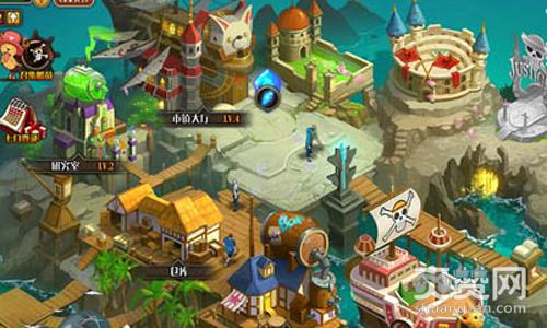 在《大海贼》游戏中,处处带着海贼王的影子,就拿游戏背景来说吧。游戏中借用了动漫海贼王中的某一个小镇,小镇四面沿海,极致体现了《大海贼》游戏的航海意图。游戏以清新雅丽的田园画风色彩鲜明地展现了一幅海上田园的画面,镇上设置了研究室、市镇大厅、训练场、竞技场、仓库、酒吧、铁匠铺和伙伴改造等等,极致体现了海贼们的生活状态。