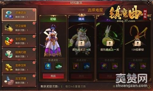 在37《镇魔曲网页版》的材料副本中,每个分类的副本都有4个难度,越到后面,难度越高,同时奖励也越好。每类副本每天能领取一次奖励,而每个副本首次通关,则能够获得首通奖励,通关灵兽武会将能获得奖励灵兽经验药水和升阶道具。