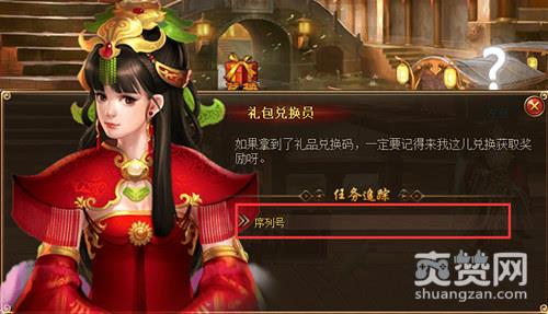 与游戏王国《武宗三国》“礼包兑换员”进行对话后,接着点击对话框中间的“序列号”一栏的任意位置,即会弹出最后的兑换窗口。