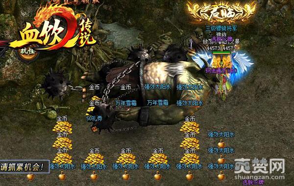 《血饮传说》中,当玩家达到70级以上,便可以在每天11:00-11:15前往盟重省找到地牢逃亡NPC安无日进入活动。活动伊始,玩家将出现在1层,想要进入下一层,玩家需要击杀所在层BOSS(或者BOSS已经处于死亡状态)并获得足够的逃脱令牌。这边提示大家,如果你想要打BOSS拿道具,那么建议你在活动伊始就进入游戏,如果你只是想要拿金砖拿成就令牌,那就等5分钟再进去,这样低层的BOSS就会处于死亡状态,而你只需要有足够逃脱令牌就能迅速拿到每层奖励。
