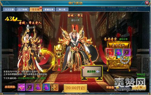 43u《仙谕》的圣王战是需要玩家等级达到90级才可以参加的一个宗门活动哦,活动时间是每周日20:00-20:30。各宗门确定抢夺龙椅的资格,在上半场(15分钟)结束时,占领战场内旗帜的宗门优先获得资格。若占领旗帜的宗门不足3个,则按宗门积分排行顺位补足,不符合资格的修仙者将踢出战场,不可再进入。