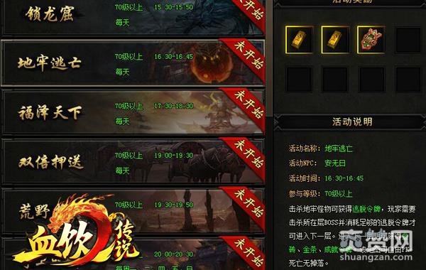 每天下午四点半,《血饮传说》地牢逃亡准时上演,所有达到70级以上的玩家都可以参与活动,每一位参与活动的玩家都将被困于地牢,并从1层出发,朝着最高层的出口逃亡。一路上,玩家们将遭遇BOSS、遭遇怪物、遭遇任务等挑战,到底能不能透出升天,还真是未知数!