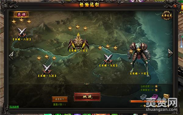 十五关挑战来袭,怪物远征见证英雄极限,360uu《战神风云》全新闯关玩法开启,等候你来证明你的实力!在怪物远征之中,十个章节十个难度,总共150大关等待你来应战,丰厚奖赏同样等待你来领取。在每一个章节中都有十五个小关卡向你开启,首次通关还可以领取到宝石、灵兽等奖励,玩家们在当前章节所有关卡中完成3星目标即可激活下一章节。同时每一个章节也都将有等级的限制,这里将是你测试实力的最佳舞台,进军远征勇往直前,向最后一关进军!