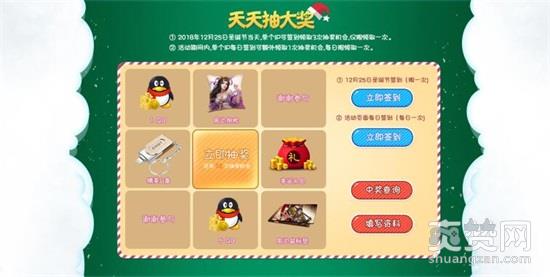 活动期间,每日前往活动页面签到即可获得一次抽奖机会,12月25日圣诞节当天签到,还可额外领取三次抽奖机会,游戏限量周边、游戏礼包、Q币等等海量奖品,等待着幸运的你前来领取!