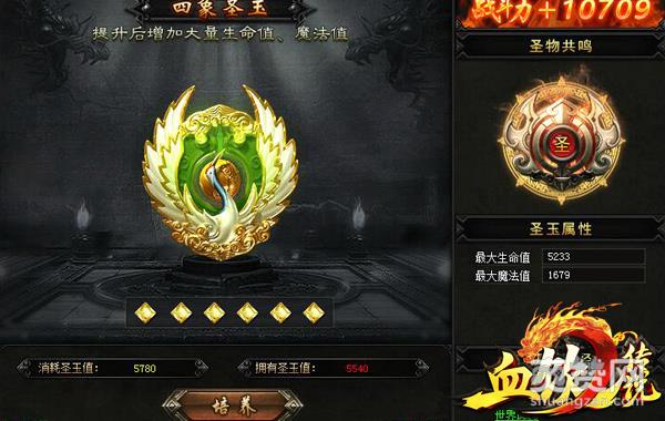《血饮传说》有一个专门用于各类属性着重加成的系统——圣物。其中,圣玉可以大幅度的增加玩家的生命值和魔法值,消耗圣玉值可以提升圣玉等级。至于圣玉值,玩家则可以通过消耗圣玉碎片获得。而圣玉碎片则可以通过:副本任务、军功任务、世界BOSS来获得。这边要跟家特别交代一下,不要专注于一个圣物升级,而要均衡四大圣物的级别,因为当4个圣物达到一定等级时,会激活圣物共鸣,激活共鸣会增加属性,提升战力。