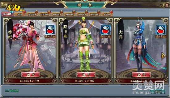 43u《傲战无双》美人副本可以产出胭脂,胭脂可用于钦点更高级的美人,击败美人即可获取相应的胭脂奖励。玩家们进入副本后,需要在规定的时间内击败美人。美人被击败后,美人等级会提升,增加游戏难度,但相应的胭脂奖励也越多,每晚24点美人等级会在其当前等级基础上降低20级。