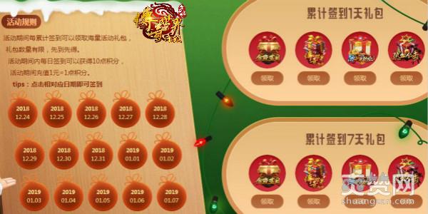 2018年12月24日-2019年1月7日活动期间,累计签到达到要求,就可以领取海量活动礼包,特别要注意的是,物以稀为贵,礼包数量有限,先到先得,来晚就没有啦!