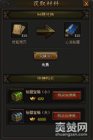 想要获得心法秘籍也并非难事,其主要的获得方式是boss掉落和商城购买,当然了,除了这两种,每天还可以有8次用技能残页兑换的机会,萝卜玩《传奇霸业》10个技能残页可以兑换一本心法秘籍,记得每天来兑换哦!