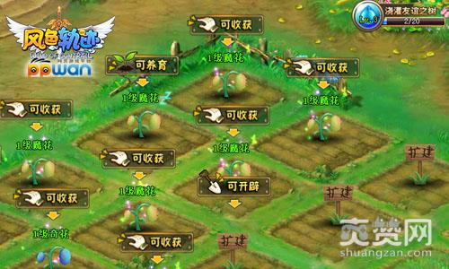 一座临湖小筑,一方肥沃花田,一颗友谊之树组成了ppwan《风色轨迹》后花园——玩家游戏中的家园!打造秘密后花园,玩家可以从花田开始。在ppwan《风色轨迹》中,玩家可以在花田种植魔花和奇花两种花,收获的魔果可以用于炼制药水,收获的奇异果实则可以提升雇佣兵的装备等级。此外,两种培育方式都可以收获花园经验哦!