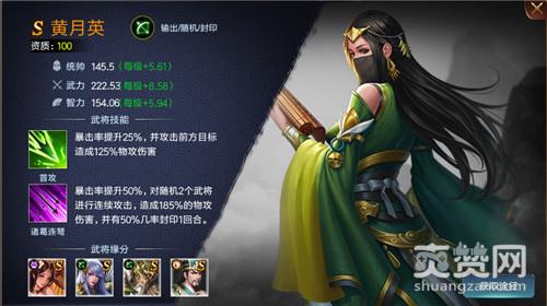 而“黄月英”是输出封印型武将,武力属性很高,具有提升自身暴击,对随机对象连击并概率封印的能力。从能力上来看,“黄月英”比较适合用来PVP,可以在竞技场、南蛮宝库等活动中使用。